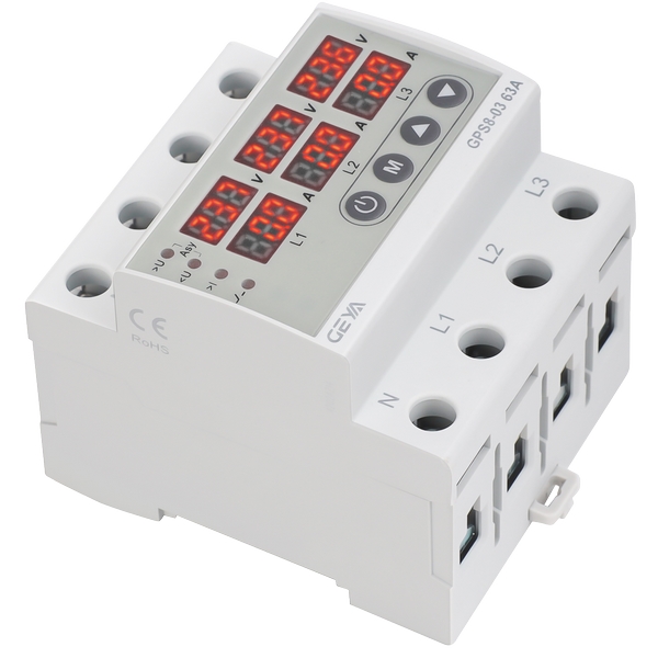 GPS8-03 是一款高性能的三相線路保護裝置。它持續(xù)監(jiān)測三相電壓和電流的真有效 值,當檢測到預設的過壓、欠壓或過流故障時,能迅速切斷電路,有效防止因電網異常 或設備故障導致的電氣設備損壞和安全事故。故障排除后,設備支持自動復位,恢復供 電。 |