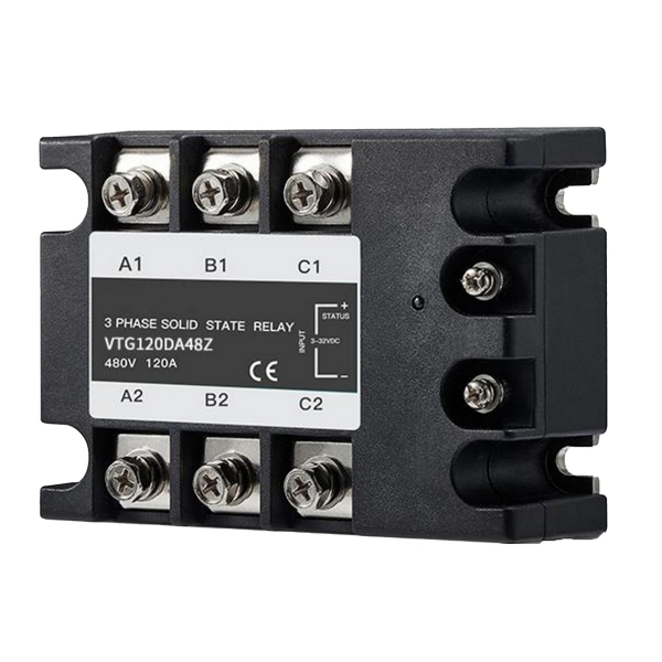 產品介紹:VTG系列三相固態繼電器(SSR)是專為工業級三相負載控制設計的無觸點開關器件。基于的半導體技術,它通過微電子信號控制大電流通斷,徹底取代傳統機械式繼電器。該系列集成了過零導通型與隨機導通型兩種工作模式,支持3×25A至150A寬電流范圍,適用于480V/530V交流系統,為三相電機、加熱設備等負載提供高穩定性控制。